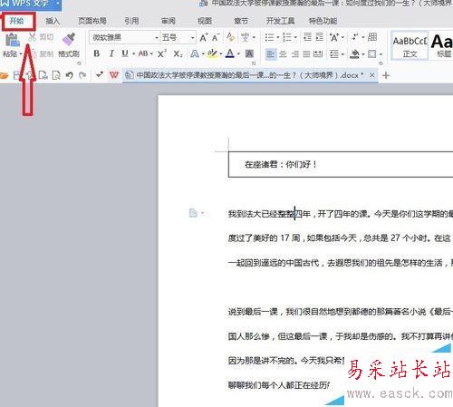1、我們先在wps打開需要我們特別注明的文檔,選擇好需要加上邊框的段落。單擊菜單欄“開始”——邊框——邊框和底紋