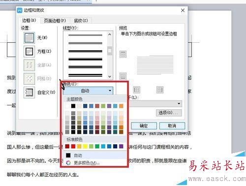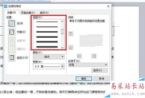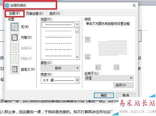 2、在彈出的“邊框與底紋”對話框中選擇“邊框”選項卡,選擇“方框”。