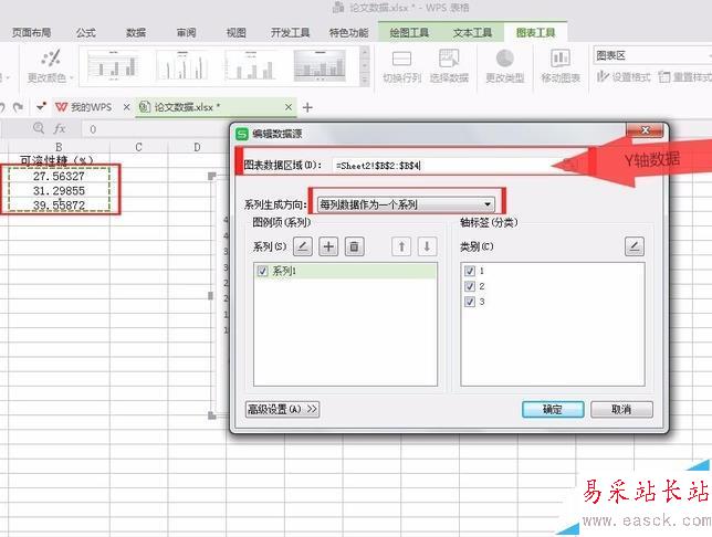注意:“系列生產(chǎn)方向”,數(shù)據(jù)按列排放就選擇“每列數(shù)據(jù)作為一個(gè)系列”,按行的就選擇“每行作為一個(gè)系列”。然后點(diǎn)擊“類(lèi)別”旁的”編輯”按鈕。出現(xiàn)一個(gè)“軸標(biāo)簽”框,將鼠標(biāo)點(diǎn)擊在空格處然后全選X軸數(shù)據(jù),然后點(diǎn)擊”確定”。回到編輯框點(diǎn)擊“確定”。這樣柱形圖就生成了。