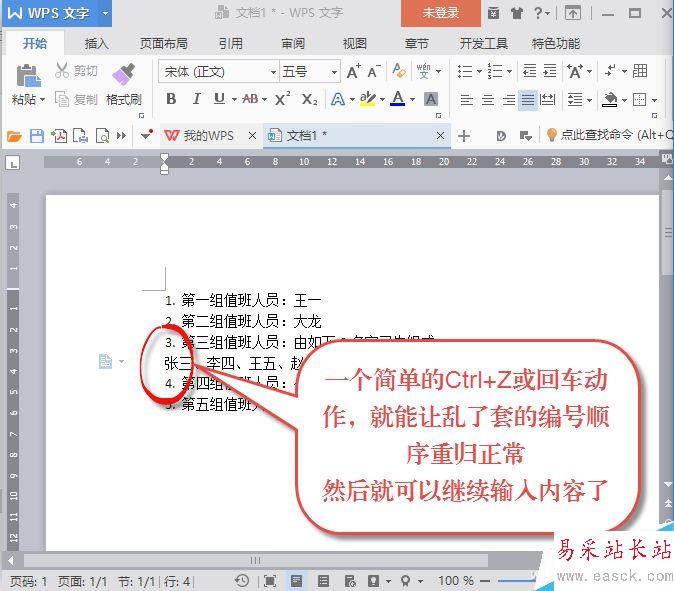 其實,這里有個很方便的辦法——當出現不需要的自動編號時,順手按一下“Ctrl+Z”或者多按一次回車,即可去除多余的編號,也不會損壞原有的編號順序。
