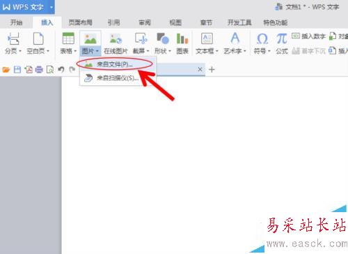 1、打開WPS文字,單擊菜單欄的 插入 -> 圖片 -> 來自文件 ,選擇自己需要的圖片,如下圖所示。