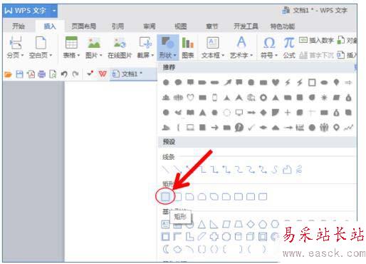 3、接下來添加自選圖形。單擊 插入 -> 形狀 -> 矩形(可以按照自己的實際需求選擇,一般用矩形)
