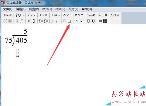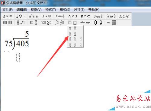 4、在彈出的小窗口里找到除法式子模板。
