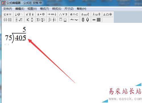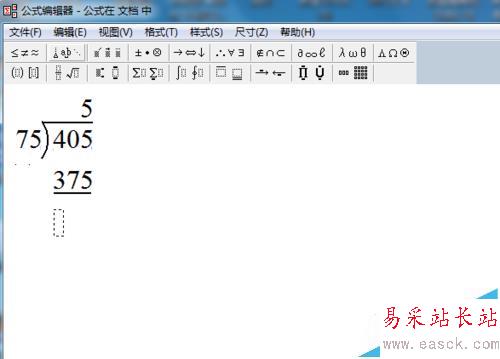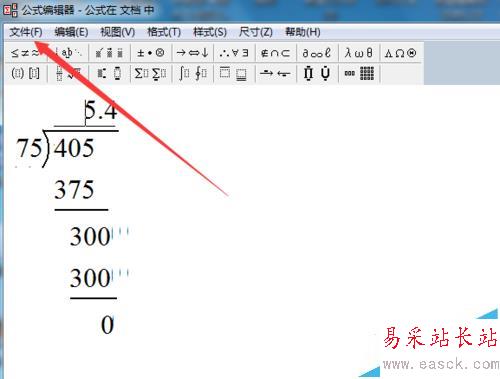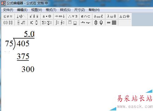 12、在余數那行輸入0,結束。如何插入到文檔呢?單擊文件---更新,就可以把公式插入文檔中,然后進行適當的拉伸,調整,看上去就比較美觀。