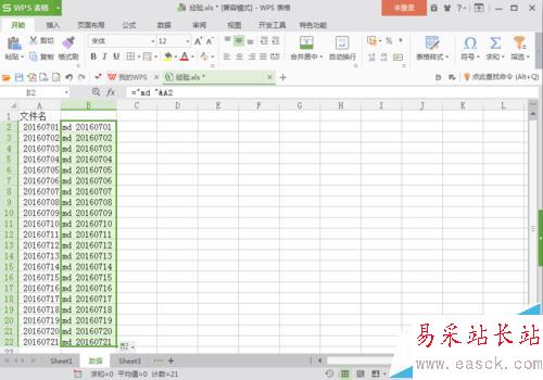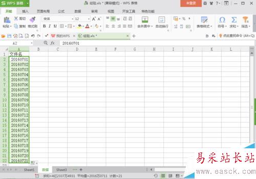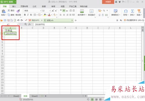 1、首先,建立一個(gè)WPS表格。打開(kāi)WPS表格,在第一行第一列輸入“文件名”,根據(jù)需要,輸入你想要批量生成的文件名,這里輸入的第一個(gè)文件名是20160701。