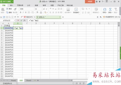 輸入格式="md "&A2,注意md后有個(gè)空格。