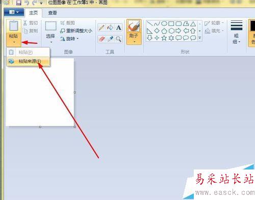 3、這個時候頁面會彈出一個繪畫的窗口,選擇粘貼來源,在電腦中選擇需要插入的圖片就可以了。
