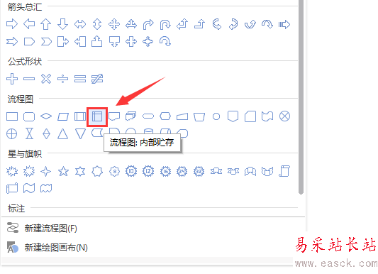 5、在流程圖選項內找到內部貯存選項,如圖所示: