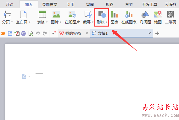 3、點擊插入選項,在其編輯工具區里找到形狀選項,如圖所示: