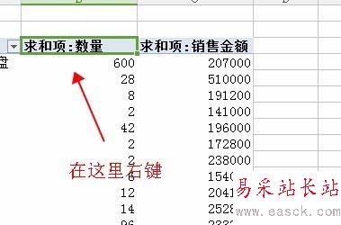 6、鼠標單擊 計數(shù)項(這里是求和項,位置就是這里),右鍵 值匯總依據(jù)選擇“求和”,這里可以計數(shù),求平均值,求最大值,最小值和積。
