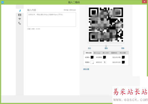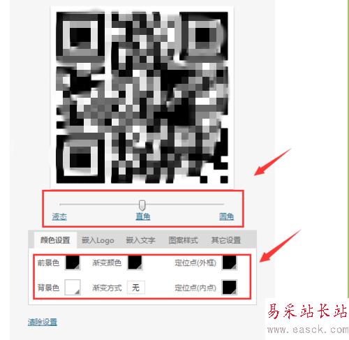 6、在右側我們可以設置二維碼的形狀和二維碼的顏色,如圖所示: