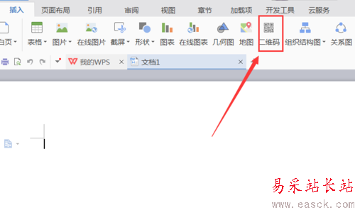 3、點擊插入選項,在其編輯工具區里找到二維碼選項,如圖所示