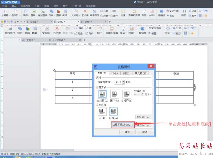 4、擊[表格]后,彈出對話窗口如下圖所示,這時我們選擇[邊框和底紋]后,單擊[邊框和底紋]。