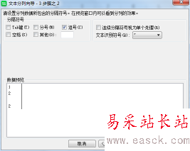 3、去除身份證號(hào)碼前“‘”字符。選中一列身份證號(hào)碼,依次點(diǎn)擊 數(shù)據(jù)→分列,在彈出的對(duì)話(huà)框中選中“分隔符號(hào)”,點(diǎn)擊下一步,再選中“逗號(hào)”,點(diǎn)擊下一步,選擇“文本”點(diǎn)擊完成按鈕。