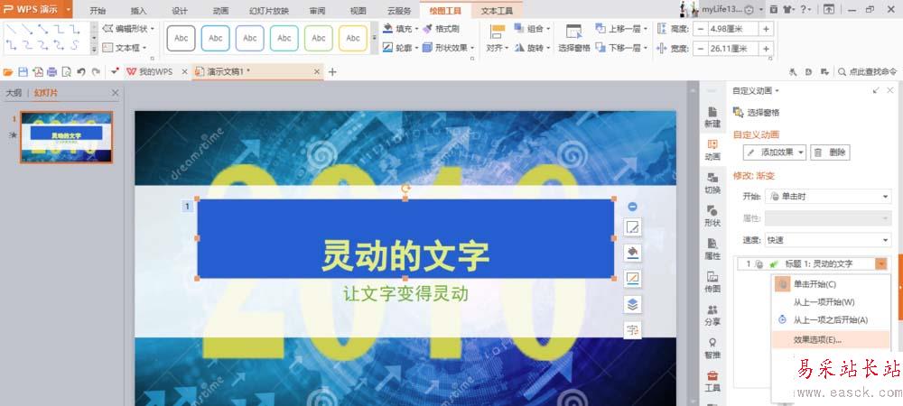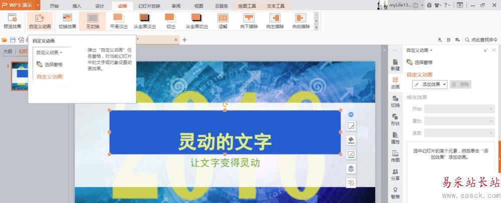 在演示文稿中,讓文字有打字機式的效果,挨個字地往外蹦,可以起到突出顯示、吸引觀眾注意力的作用。