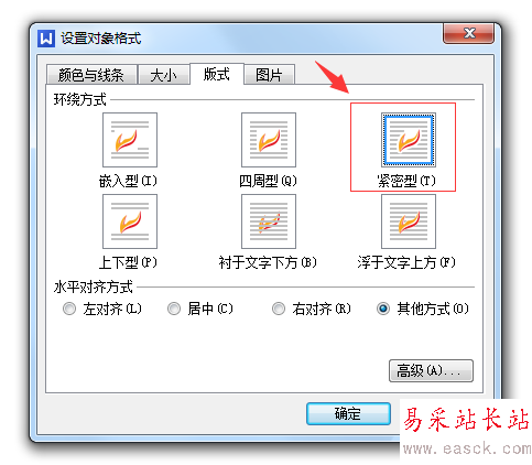 5、點擊圖片--右鍵--設置對象格式,然后在“版式”中設置成“緊密型”