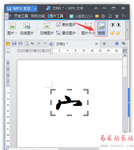 4、復制之后呢,可能除了字體之外,其他空白邊框有點大。此時可以點擊圖片--圖片工具--裁剪,然后把圖片空白邊框裁剪到相應的字體大小。