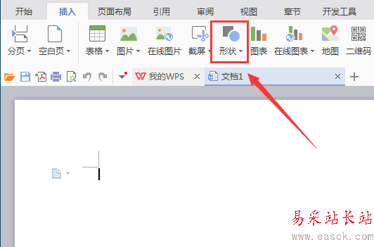 3、點擊插入選項,在其編輯區域里找到形狀選項,如圖所示: