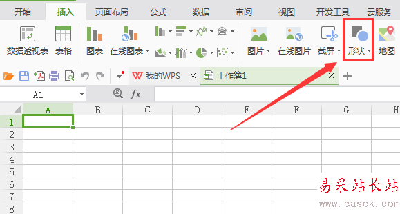 3、點擊插入選項,在其編輯工具區里找到形狀選項,如圖所示: