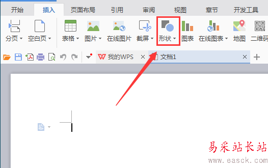 3、點擊插入選項,在其編輯工具區里找到形狀選項,如圖所示: