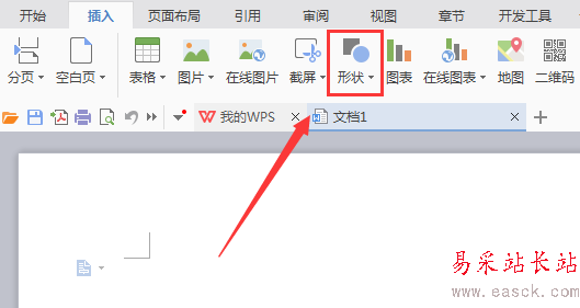 3、點(diǎn)擊插入選項(xiàng),在其編輯工具區(qū)里找到形狀選項(xiàng),如圖所示: