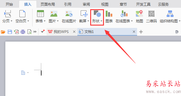 3、點擊插入選項,在其編輯工具區(qū)里找到形狀選項,如圖所示: