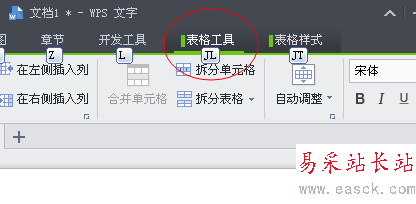 2、此時WPS文字上方自動出現“表格工具”并且有加粗的下劃線表示當前選定。
