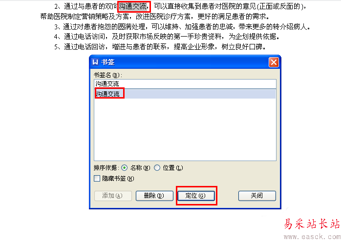 5、重新打開書簽按鈕,點(diǎn)擊定位找到之前添加書簽的文章位置。