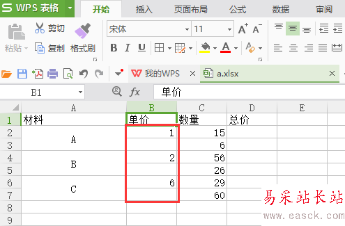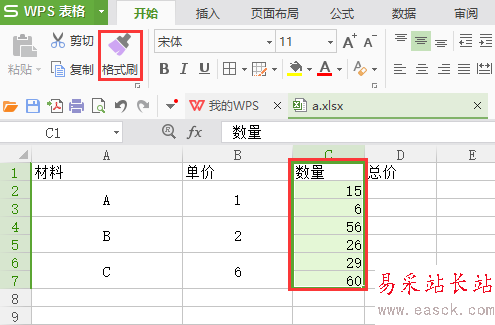 2、選中數(shù)量那些單元格,點(diǎn)擊“格式刷”,應(yīng)用到單價(jià)那一列