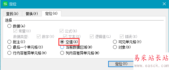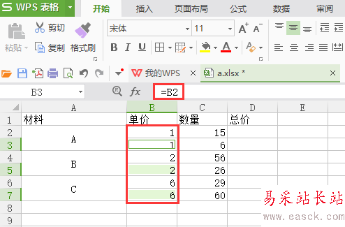 4、在彈出的“定位”對(duì)話框中,選擇空值,點(diǎn)擊確定,輸入=B2,單價(jià)那些空的單元格也填了值
