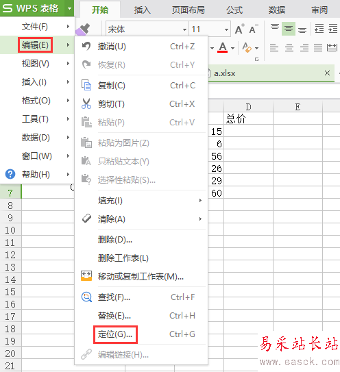 3、選中單價(jià)那些單元格,點(diǎn)擊“編輯”->“定位”