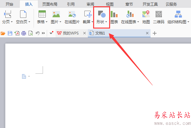 3、點擊插入選項,在其編輯工具區(qū)里找到形狀選項,如圖所示: