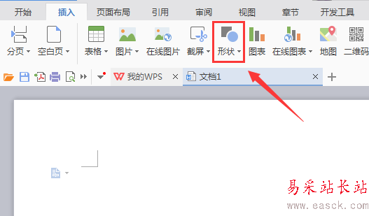 3、點擊插入選項,在其編輯工具區(qū)里找到形狀選項,如圖所示: