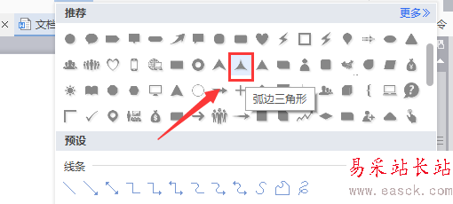5、在推薦選項內(nèi)找到弧邊三角形選項,如圖所示: