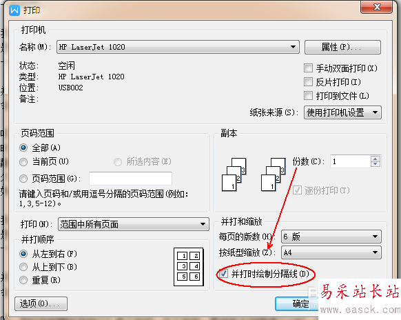 5、勾選“并打時繪制分隔線”,方便以后的剪裁。