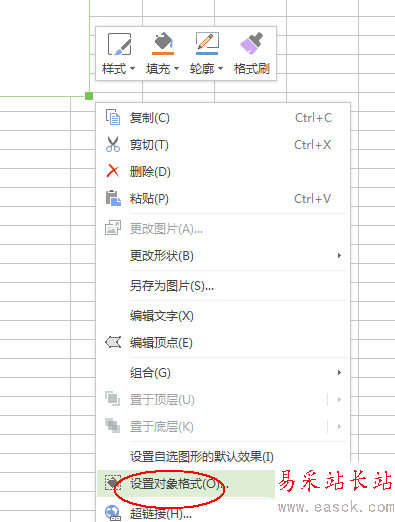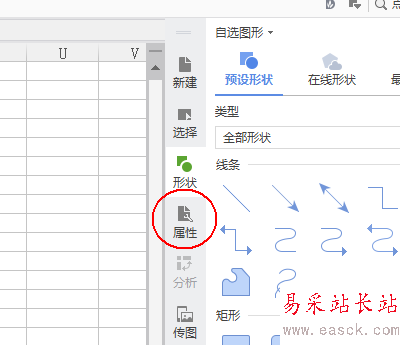 4、在右側會出現“對象格式”的設置側邊框。選擇“屬性”。