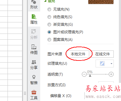 5、在“屬性”中,點擊“填充與線條”-“填充”-“圖片或紋理填充”。