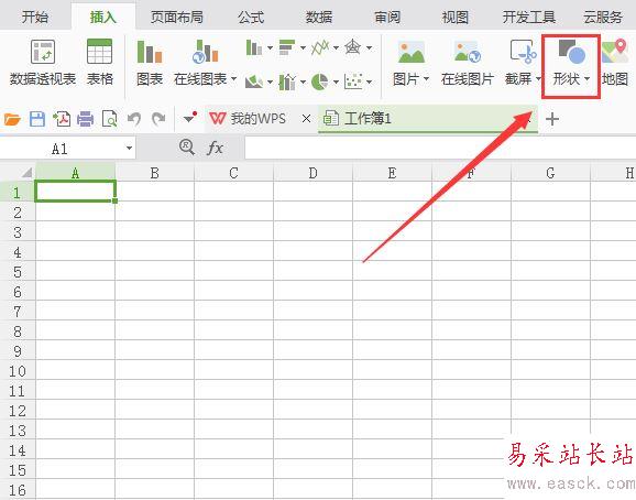 3、點擊插入選項,在其編輯工具區里找到形狀選項,如圖所示:
