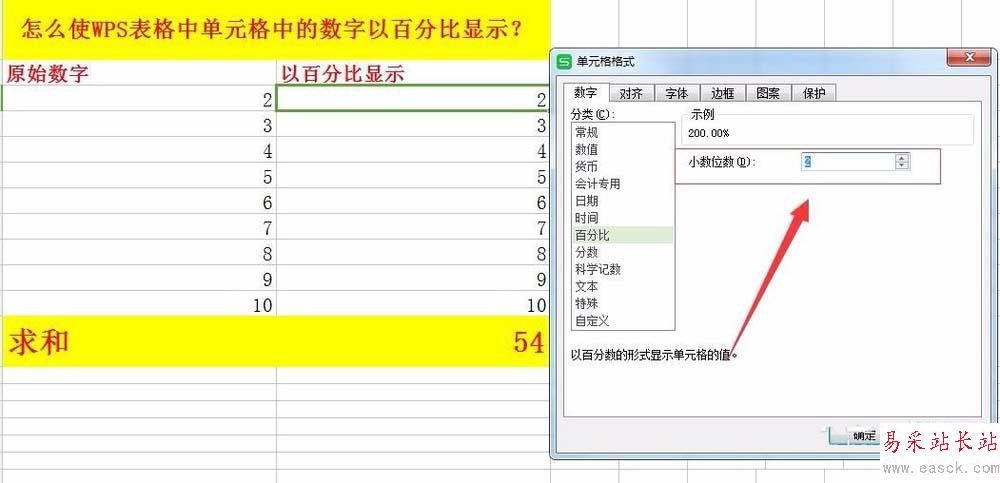 5、進入到【百分比】設置,如所示,設置小數位數。設置好后,點擊確定即可。