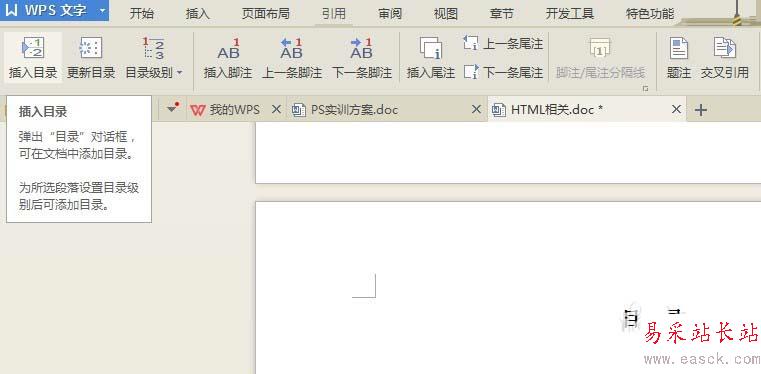 5、 當然,也可以繼續根據需要,新建三級標題或者四級標題等新格式用于文檔制作。也可以新增正文格式,這里就不進行講解了,具體步驟同上。一般做完文檔之后,需要進行目錄生成。那么,根據新增的樣式進行目錄生成其實會讓目錄生成的工作變得很簡單。如圖所示,點擊“引用”,“插入目錄”