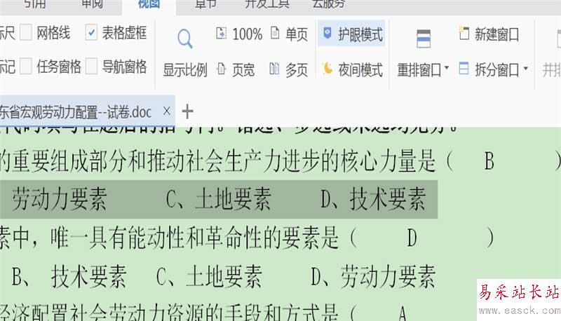 5、點擊護眼模式之后,文檔就會變成護眼色。