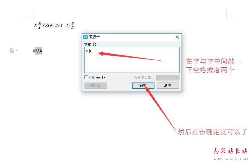 4、點擊文字中間按下空格鍵一到兩下——點擊確定就完成了