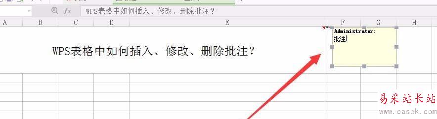 3、點擊【插入批注】后,可以看到表格中該單元格自動插入了一個批注,如下圖所示