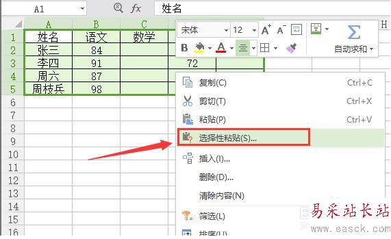3、然后,也是全選中表格,右擊,鼠標(biāo)點(diǎn)擊選擇性粘貼,如圖所示