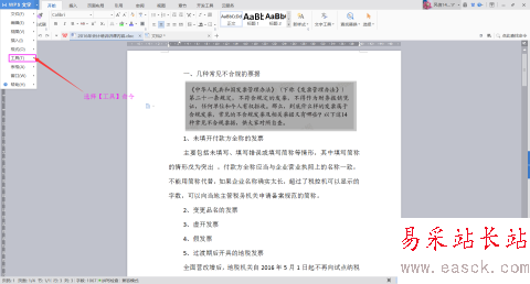 2、在命令選項中選擇【工具】命令,如下圖所示:
