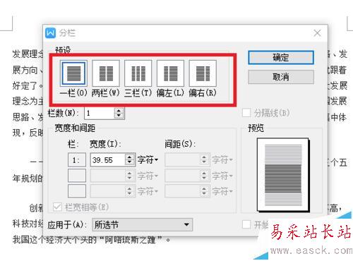3、最大上限的是三欄,然后有偏左和偏右,依據自己的需要選擇合適的分欄即可。