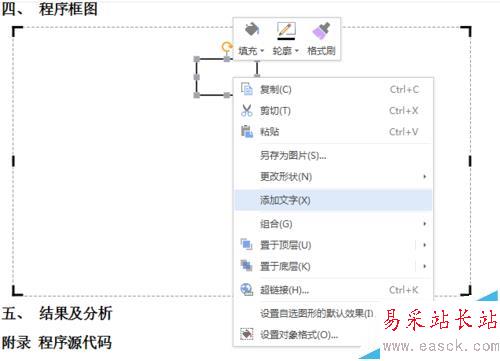 3、接下來(lái)就需要在方框中添加文字了,選中程序框,右鍵單擊,選擇“添加文字”即可在其中寫入文字了