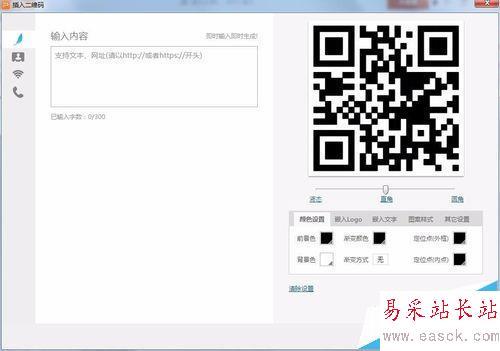 5、點擊二維碼選項,彈出二維碼設置對話框,如圖所示: