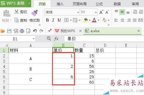 3、選中單價那些單元格,點擊“編輯”->“定位