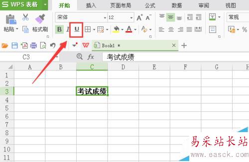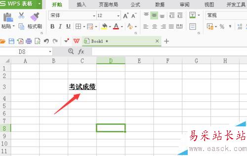 2、選擇一個單元格,并在該單元格里輸入考試成績四個字,如圖所示: